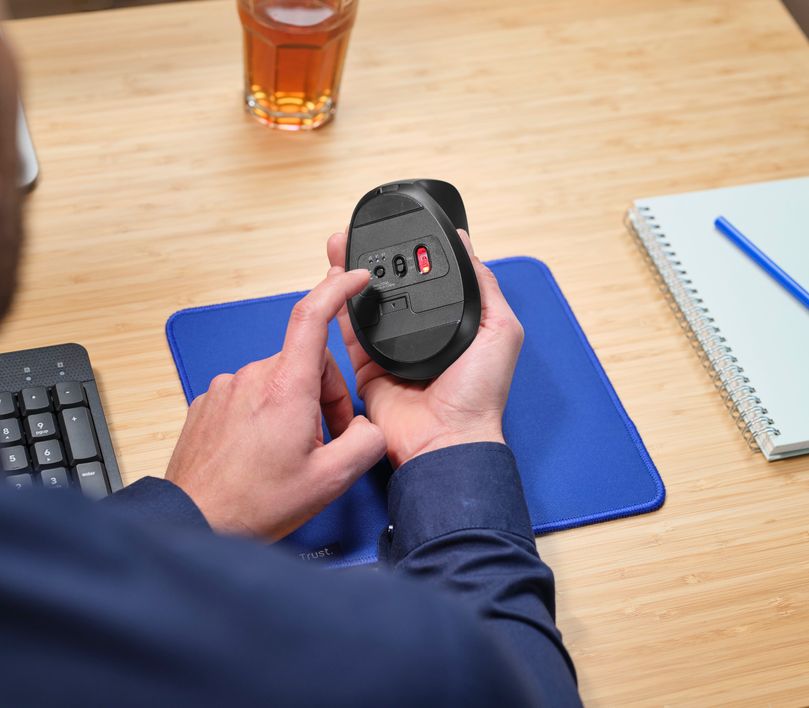 Il principale vantaggio del Trust BAYO+, disponibile in due colorazioni (bianco o nero) è la sua capacità di connettersi a più dispositivi. Questo mouse supporta fino a tre dispositivi diversi contemporaneamente, uno tramite il trasmettitore incluso che è collocato comodamente nel mouse stesso nella parte inferiore, due tramite collegamento bluetooth, permettendo di passare agevolmente da uno all’altro con un semplice pulsante. Questo è ideale per chi utilizza più computer o dispositivi mobili durante la giornata, migliorando la produttività e riducendo la necessità di avere più mouse.