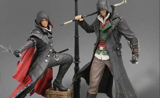 Da ottobre 2015, saranno disponibili le riproduzioni di due delle armi più celebri di Jacob: il leggendario guanto con lama celata degli Assassini, dotato anche di una replica del lanciacorda e dello sparadardi soporiferi, e il bastone animato, la nuova arma degli Assassini, che include una spada dai dettagli raffinati e una lama ricurva azionata da un pulsante a molla. Infine, UbiCollectibles presenta due statuine di Assassin’s Creed davvero dettagliate, che saranno disponibili nei territori EMEA da ottobre 2015. La prima, “Jacob Frye, The Impetuous Brother”, rappresenta Jacob tra le strade di Londra in una posa piuttosto minacciosa, dotato del celebre guanto degli Assassini e di bastone animato. Mentre la seconda, “Evie Frye, The Intrepid Sister”, è dedicata alla sua ardente e determinata sorella. Se combinate insieme, queste due splendide statuine formano il diorama “The Wise and Wild Twins”.