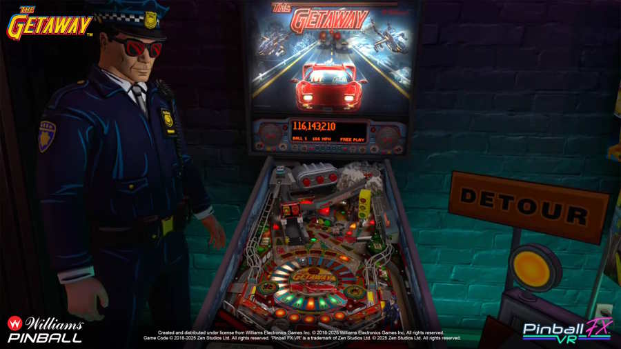 Il lavoro fatto da Zen Studios nella conversione VR di questi capolavori è encomiabile: la resa visiva è nitida e luminosa, il frame rate è stabile, e la fisica della pallina è ancora una volta perfettamente bilanciata. Anche le ambientazioni che circondano i tavoli, completamente in 3D, contribuiscono a creare un’atmosfera coerente con il tema di ogni flipper, rendendo l’esperienza ancora più completa e coinvolgente.